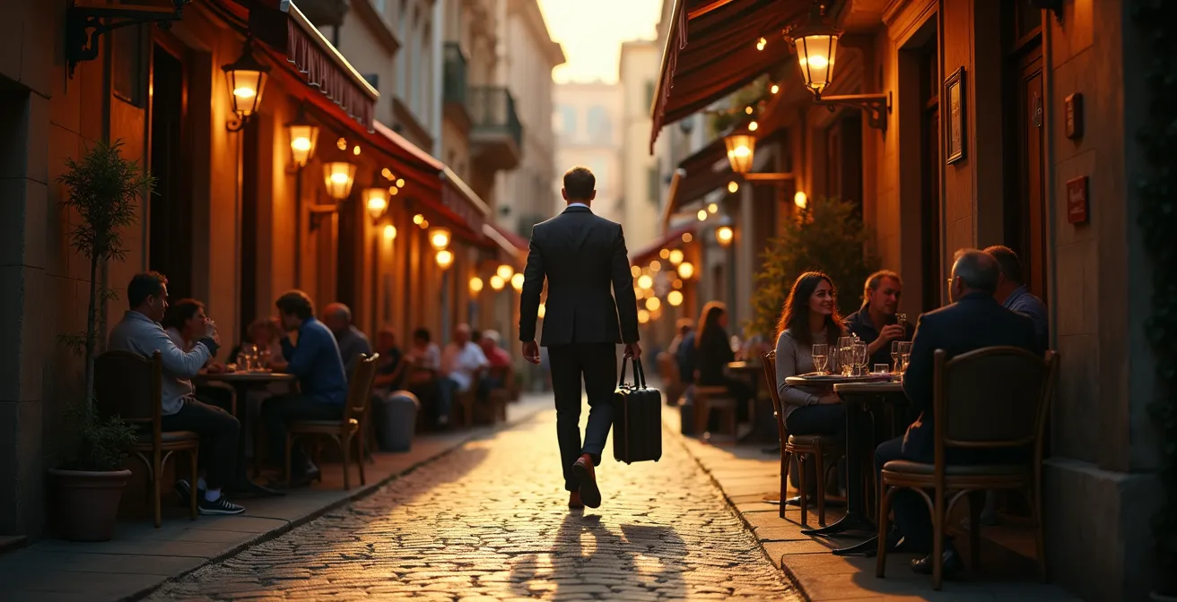 Le scénario est familier pour tout voyageur d’affaires : la journée de réunions s’achève, laissant entrevoir une fenêtre de deux ou trois heures avant le dîner. La tentation est grande de se replier sur la neutralité confortable de l’hôtel, son bar feutré et son restaurant international. C’est une option sûre, mais qui vous laisse avec le sentiment frustrant de n’avoir rien vu, rien vécu de la ville qui vous entoure. Vous êtes un simple touriste de passage, un fantôme dans un décor de carte postale, et non un acteur de votre environnement.