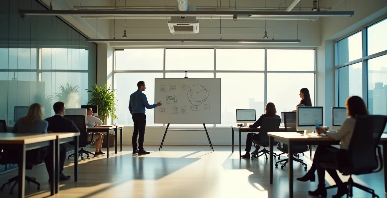- Analyse des artefacts : Examinez l’état et la fraîcheur des tableaux blancs et post-its. Des schémas complexes et récents suggèrent une activité intellectuelle intense, tandis que des notes datées révèlent une stagnation.